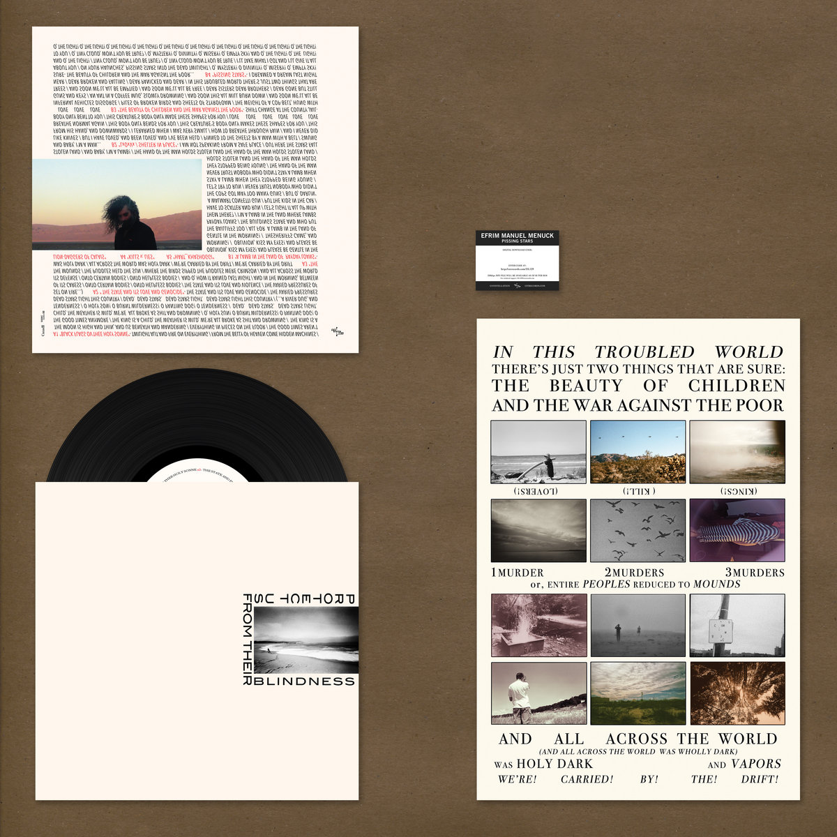 Images above show 1) front cover 2) front cover, front inner sleeve, poster 3) back cover, back inner sleeve, poster 4) poster